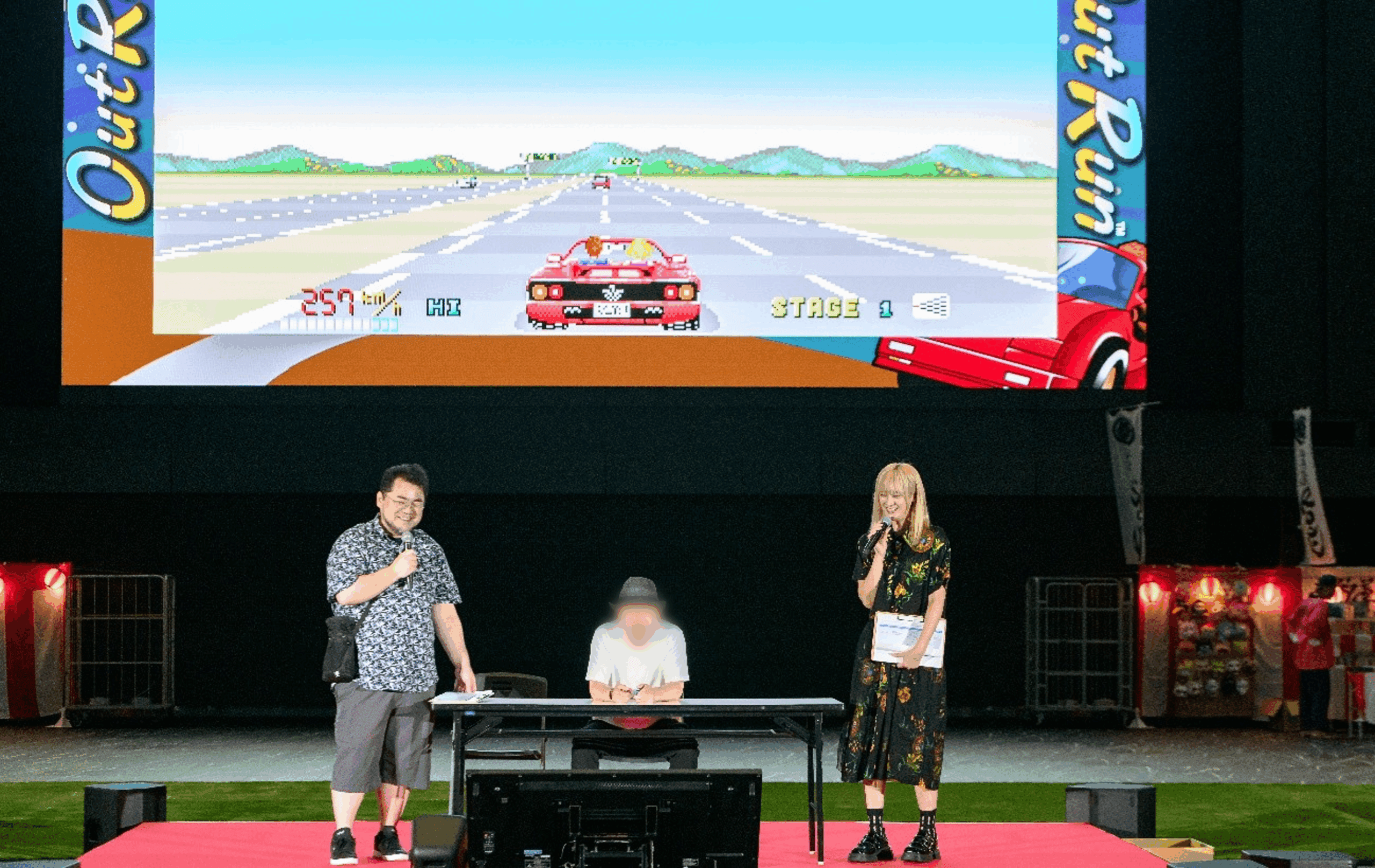 ステージイベントでは、IGN JAPANの千葉芳樹編集長とドラマーで女優の夏芽さんがMCを務め、来場者たちとドライブゲーム「SEGA AGES アウトラン」やアーケードゲームでおなじみの「パックマン」をプレイし、会場を盛り立てました。